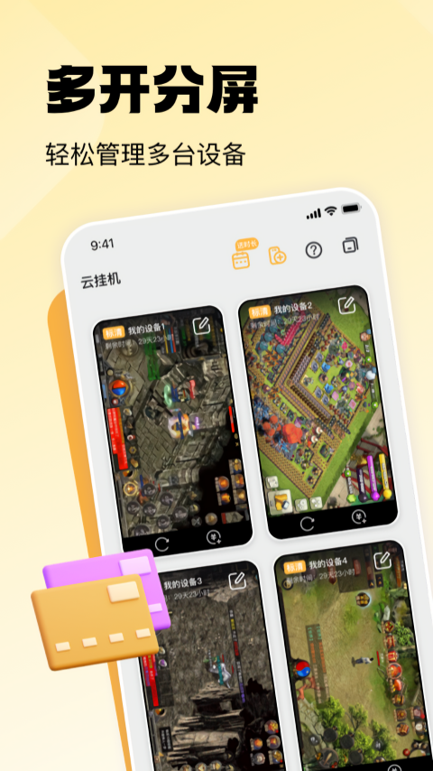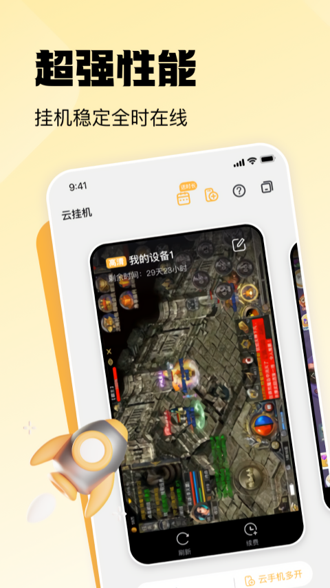贪玩云分身(已改名全民云手机)是一款手机游戏工具,除了可以帮助告别各种手机限制烦恼,实现游戏畅玩外,也可帮助实现云端托管功能、远程操控功能,来帮助更好的进行游戏体验。同时,这里所支持的小窗分屏也很强大,支持管理多台设备,让你直接分屏就可体验更多乐趣。