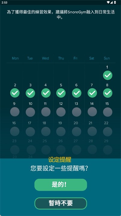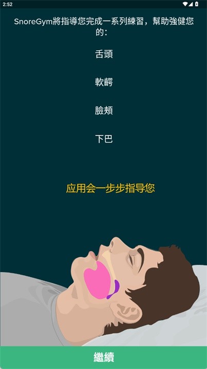SnoreGym是一款专为喜欢打鼾的伙伴所打造,可以帮助进行训练,帮助有效减少打鼾的频次外,还可帮助提供详细的训练课程,无需担心自己做没有成效。练习课程除了文字描述外,也带来了浅显易懂的动画,帮助更好的上手体验。