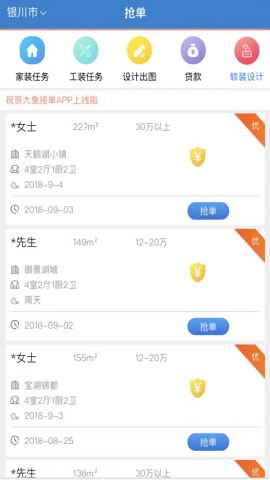3.接单大厅:装修服务商拓展客源,家装、工装应有尽有。