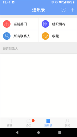 在移动OA中,你可以利用通讯录的功能直接拨打电话、发送短信。在主界面点击“通讯录”,打开后可根据组织机构分级查找,也可以通过右上方的搜索按键直接定位,选中联系人拨打电话。注意:你一定要先维护好自己的手机号码,才能正常接打电话和接收短信哦。