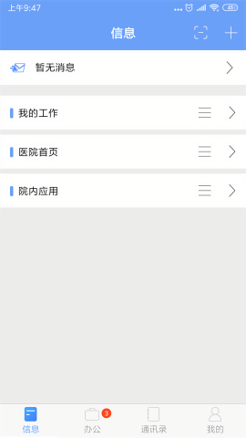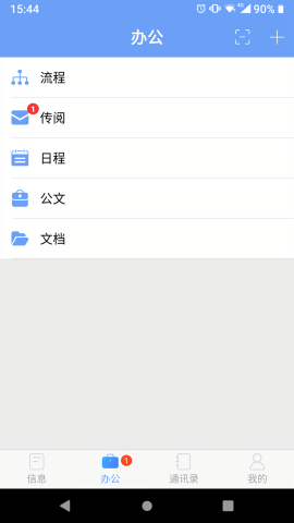 在办公界面下点击“门户”按钮,在“频道栏目”选择科室和栏目即可查阅相关内容,附件也可用手机自带的阅读工具浏览。