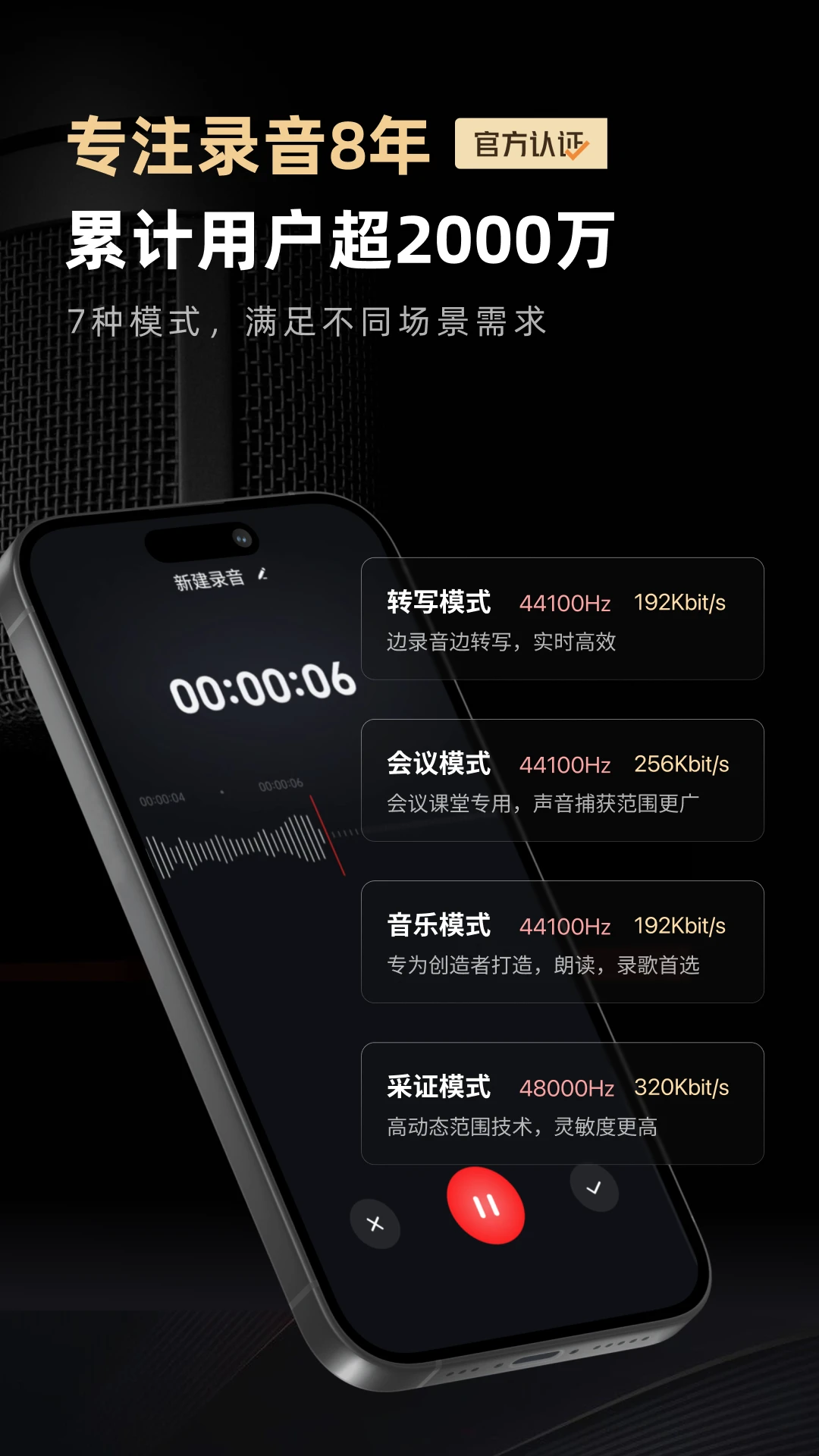 录音专家会员版是一款非常好用的手机录音软件,是否经常觉得手机自带的录音软件录下的声音不清晰?赶紧试试这款软件吧,它不仅能够清晰详细的将各种声音为你实时录制下来,并且还支持编辑,这样不管是工作还是学习都能让你更加的高效。