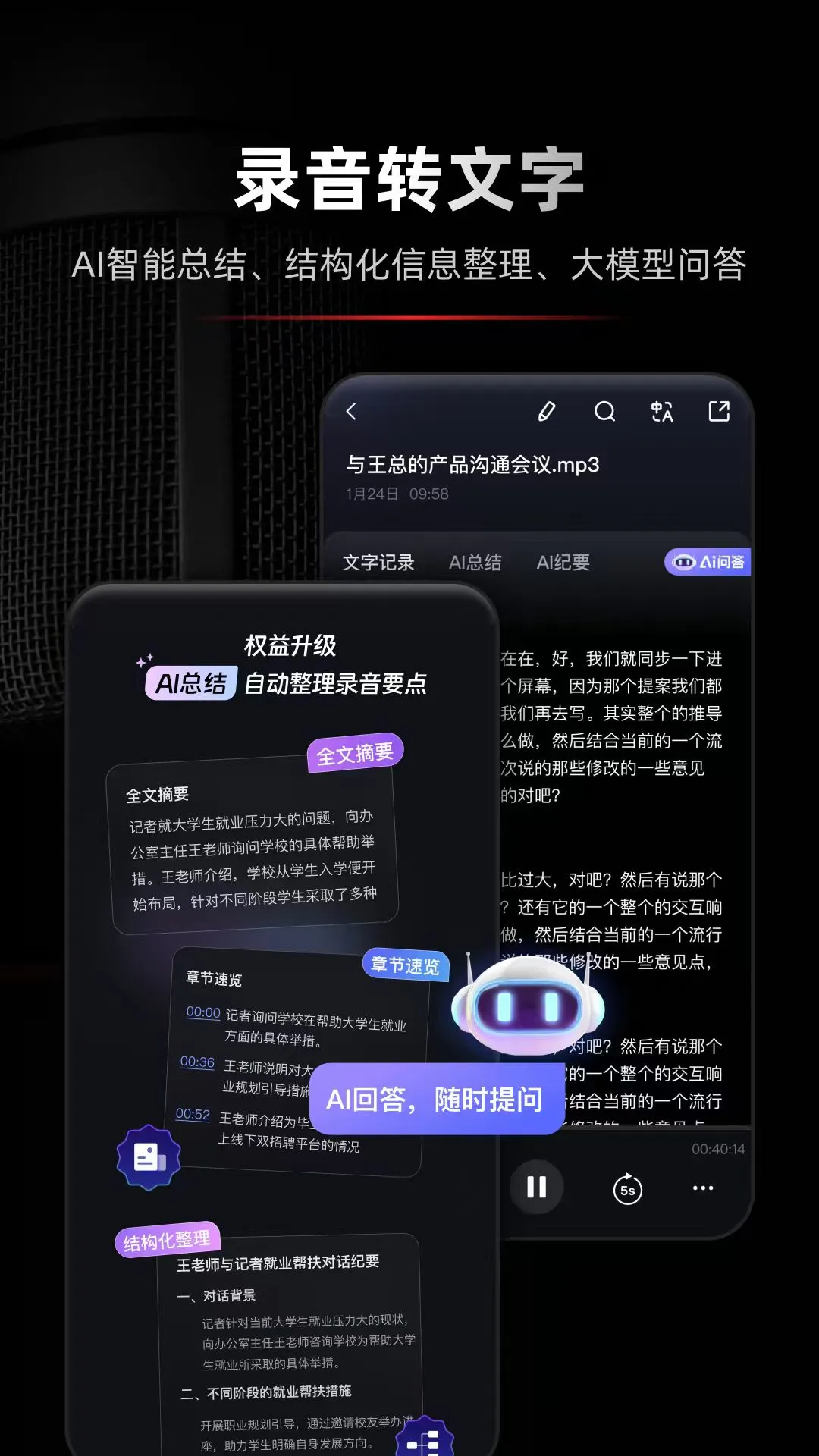 2、精准语音转文字,会议纪要,课堂内容,一键整理