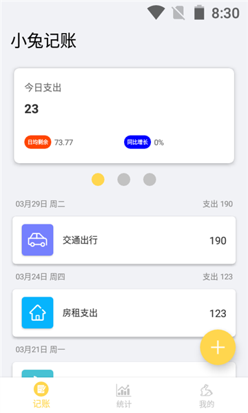 小兔记账官方版是能够在上面记录自己日常开销的记账软件,所有的数据都会自动保存在云端,很多花销情况都能及时知晓。软件的体积非常小,不会占用太多的手机空间,使用的方法非常简单,很容易就能在线快速记账。能够制定详细的消费计划,只要设定一个消费额度就能帮你合理规划。